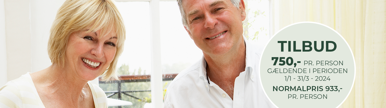 TILBUDSPRIS: Kr. 750,- pr. person i delt dobbeltværelse i perioden 1/1 - 31/3 2024